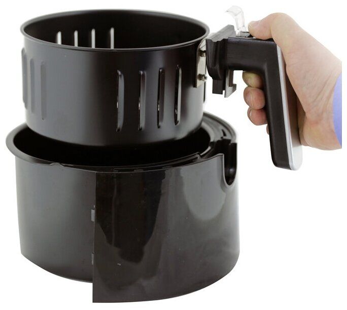 Уникальная технология позволяет жарить, запекать овощи, мясо и рыбу или готовить выпечку всего с одной ложкой масла или вообще без него: жарка в аэрофритюрнице происходит потоком горячего воздуха, который создается мощным нагревательным элементом и циркулирует под воздействием вентилятора, что обеспечивает равномерное обжаривание продуктов с каждой стороны, а снаружи образует румяную хрустящую корочку. Готовить вкуснейшие блюда с аппетитной хрустящей корочкой стало так просто!