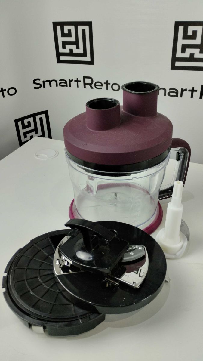 Большая чаша измельчителя емкостью 1750 мл с комплектом насадок «4 в 1»: Насадка для нарезки кубиками, Насадка-терка, Насадка-шинковка, Насадка-измельчитель, Петля для подвешивания, Прорезиненные съемные части