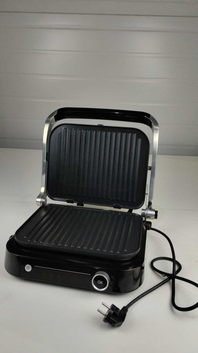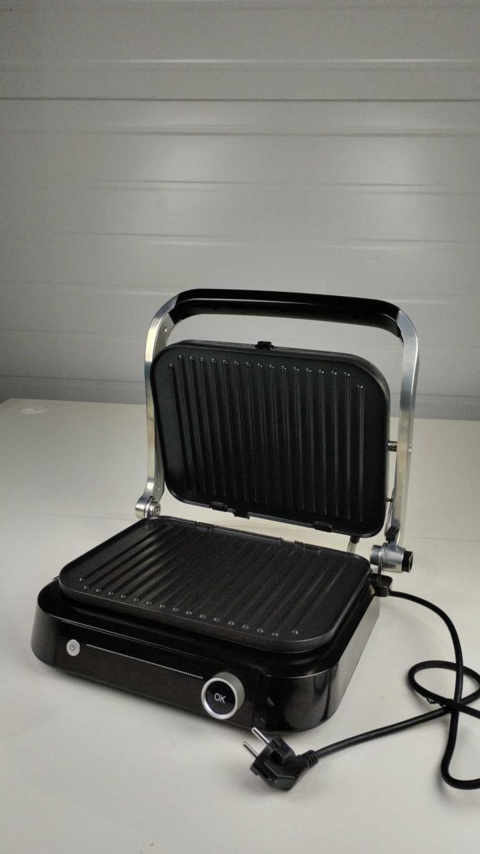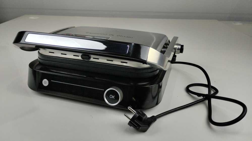 Конструкция с возможностью раскрытия верхней крышки на 180 градусов позволяет готовить контактным способом или в открытом виде.