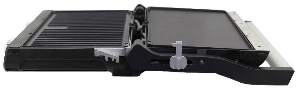 Отличительной особенностью данной модели является нагреватель закрытого типа мощностью 2300 Вт, расположенный в верхней и нижней части устройства с возможностью регулировки температуры на каждой отдельной поверхности. Благодаря этому, а также наличию антипригарного покрытия и возможности замены панелей на рифленые или ровные, вы легко сможете добиваться наилучшего результата при приготовлении ваших любимых блюд.