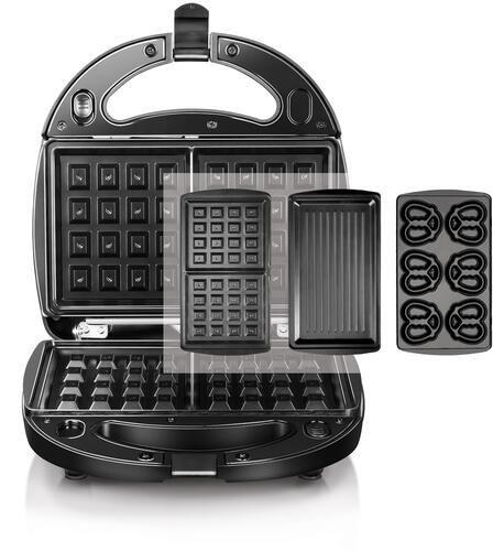Комплектация: инструкция по эксплуатации, книга рецептов, комплект съемных панелей для приготовления вафель, комплект съемных панелей для приготовления мини-крендельков, комплект съемных панелей для приготовления на гриле, сервисная книжка