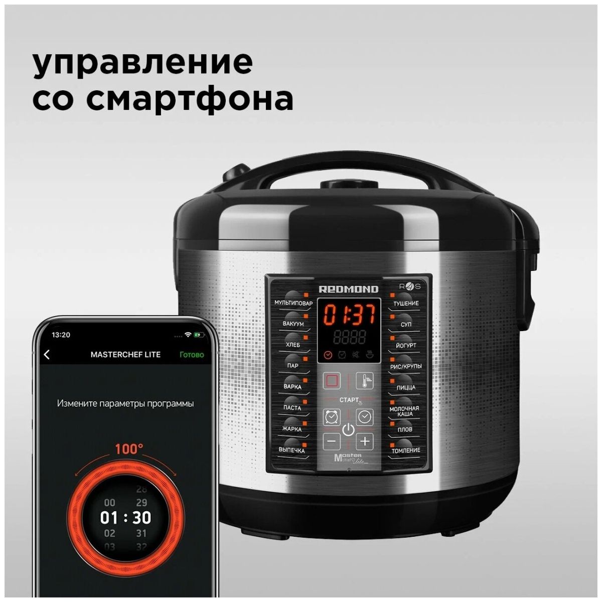 Умная мультиварка REDMOND SkyCooker RMC-M40S – инновационный прибор, управляемый со смартфона. Достаточно загрузить на личный смартфон интуитивно понятное приложение Ready for Sky, чтобы с любого расстояния отправлять команды смарт мультиварке.