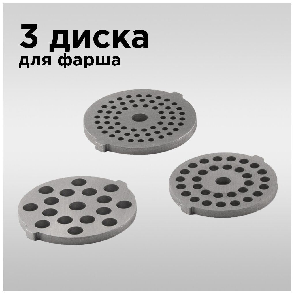 Мясорубка Redmond RMG-1222 при мощности до 1200 Вт способна превратить в фарш 2 кг мяса за минуту. С такой производительностью она удовлетворит потребности большой семьи. К тому же в комплекте у нее 3 диска с разным диаметром отверстий для фарша, с помощью которых можно регулировать степень измельчения. Так получится сделать для детей нежные однородные котлетки, а для гурманов постарше – с ощутимыми кусочками.