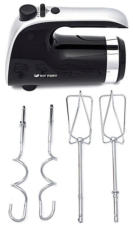 Комплектация: 2 венчика для взбивания яиц и крема, 2 насадки для замешивания теста, инструкция