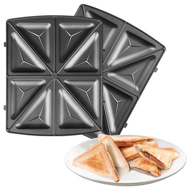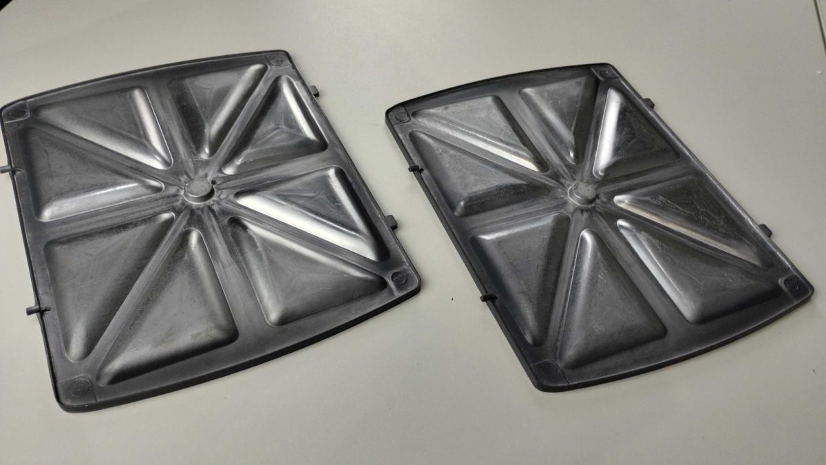 В наборе REDMOND RAMB-101 имеется 2 одинаковые панели. По конструкции изделия совместимы с девятью моделями мультипекарей одноименного бренда. Изделия легко вставляется в оборудование, и также быстро вынимаются для очистки. Рельефная поверхность обеспечивает удобное расположение хлеба и такое же простое вынимание готовых сэндвичей.